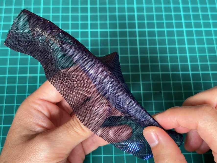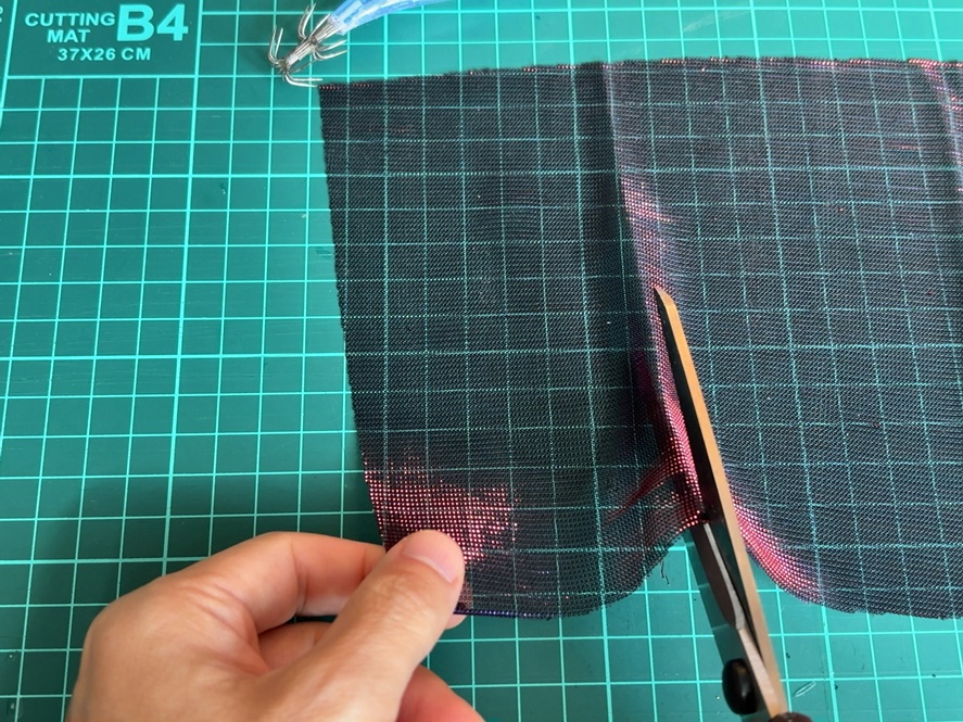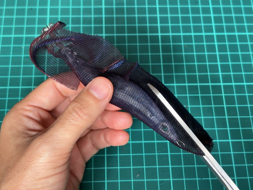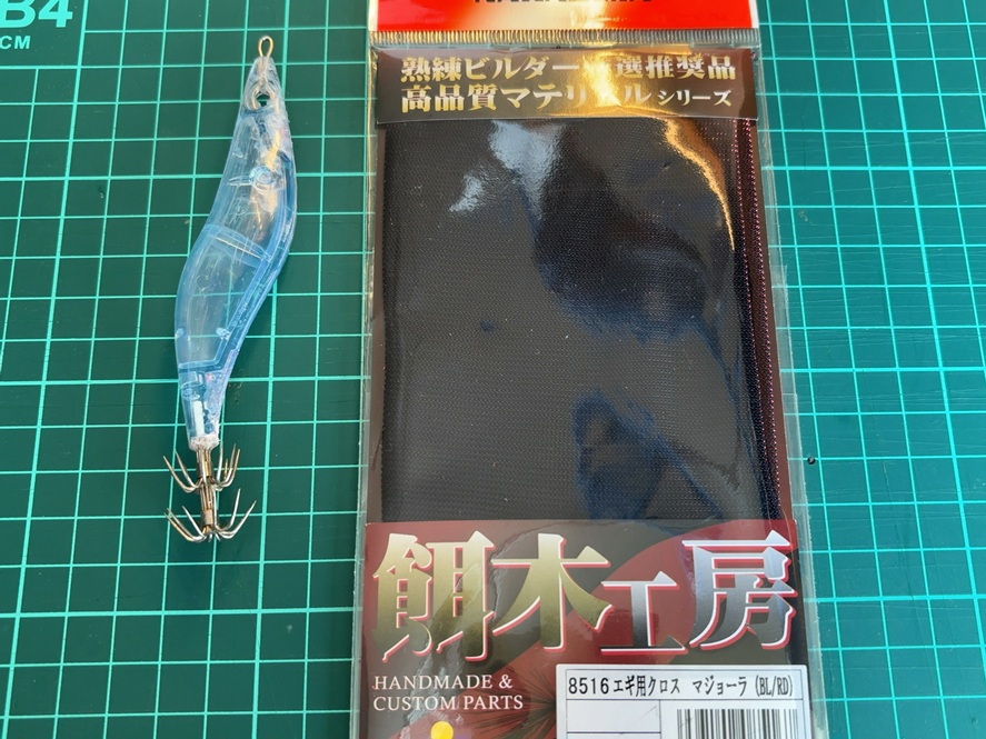 使う布は「ナカジマ 餌木工房 エギ用クロス」のマジョーラ BL/RDカラーです。