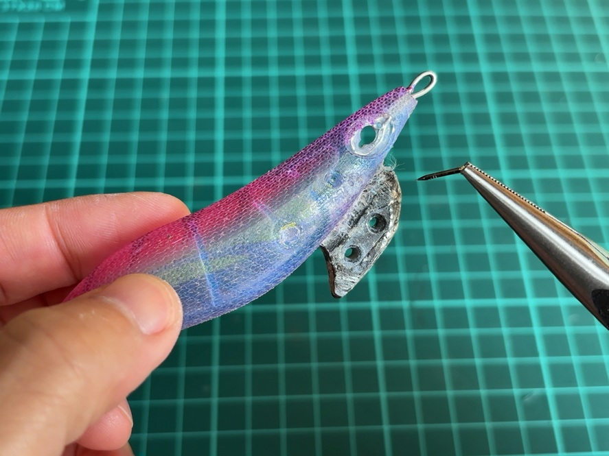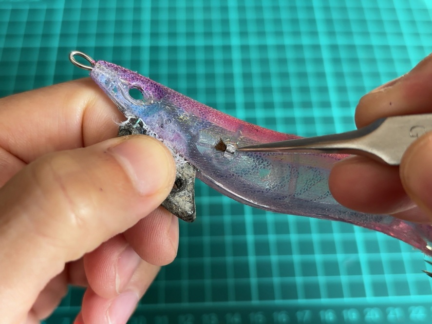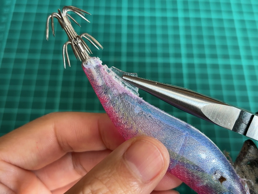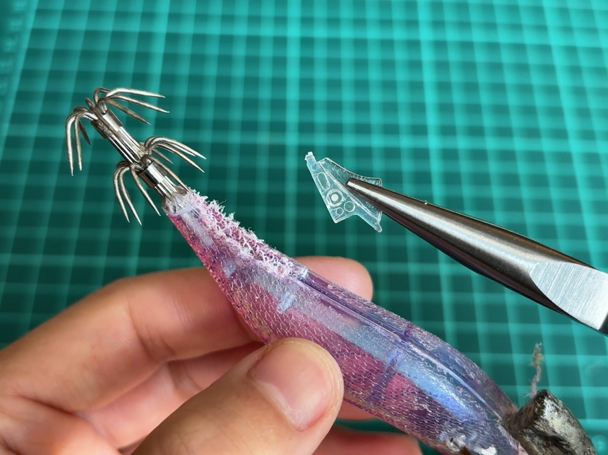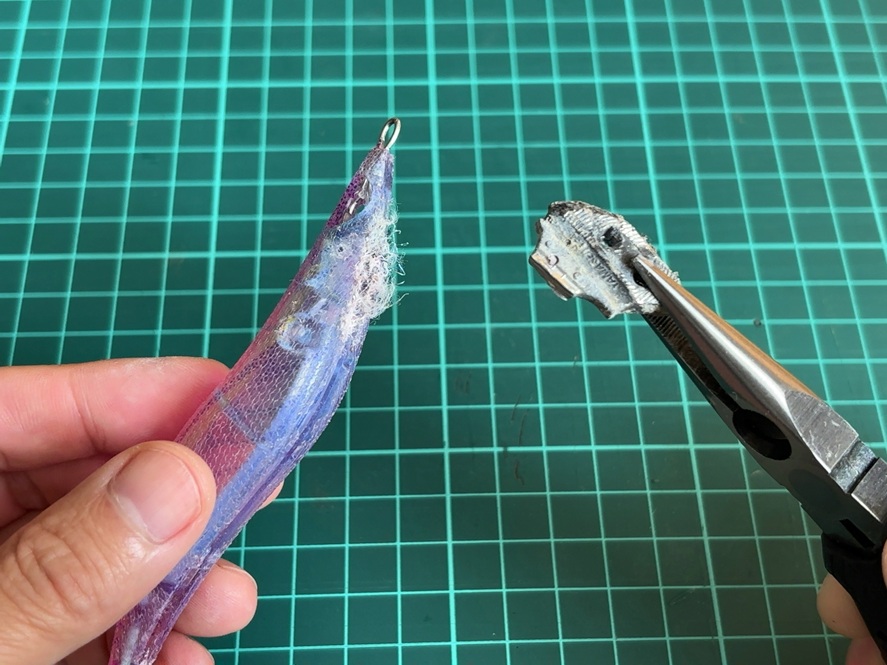 エギ王K特有の「ハイドロフィン」はペンチで引っ張れば外せます。