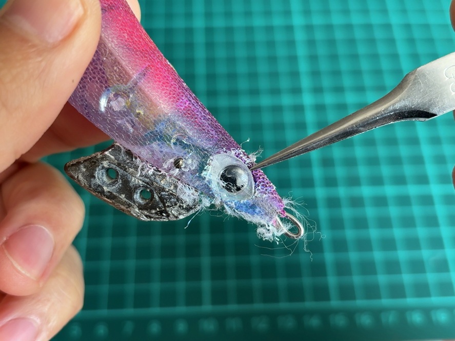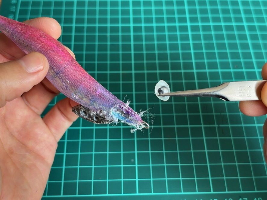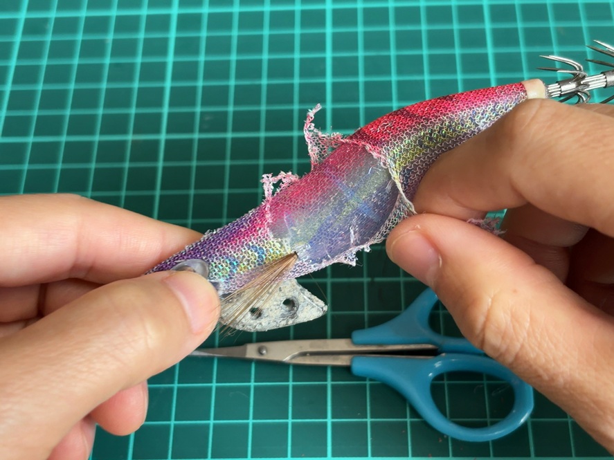 実は、エギの布は自分で張替えることができ、見た目も復活させることができます。