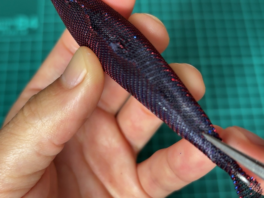 羽根もボディとの隙間にピンセットを挿して、徐々に外していきます。