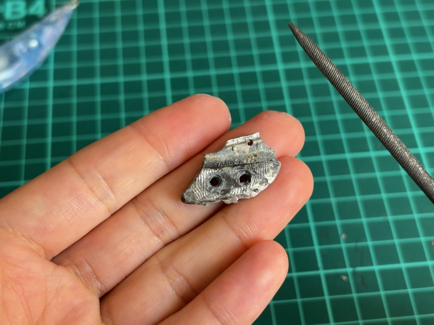 ボロボロになっているシンカーは棒やすりなどで研いで、キレイに仕上げます。