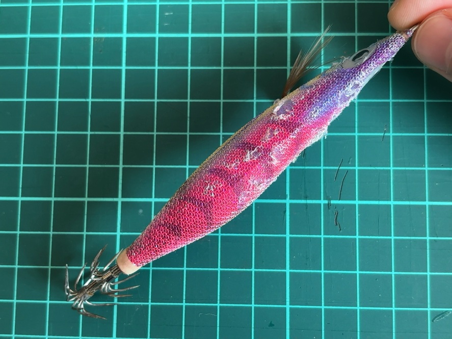 わたしも今シーズンのアオリイカが終わり、ボロボロになってしまったエギがいくつかあったので布の張替えをしました。