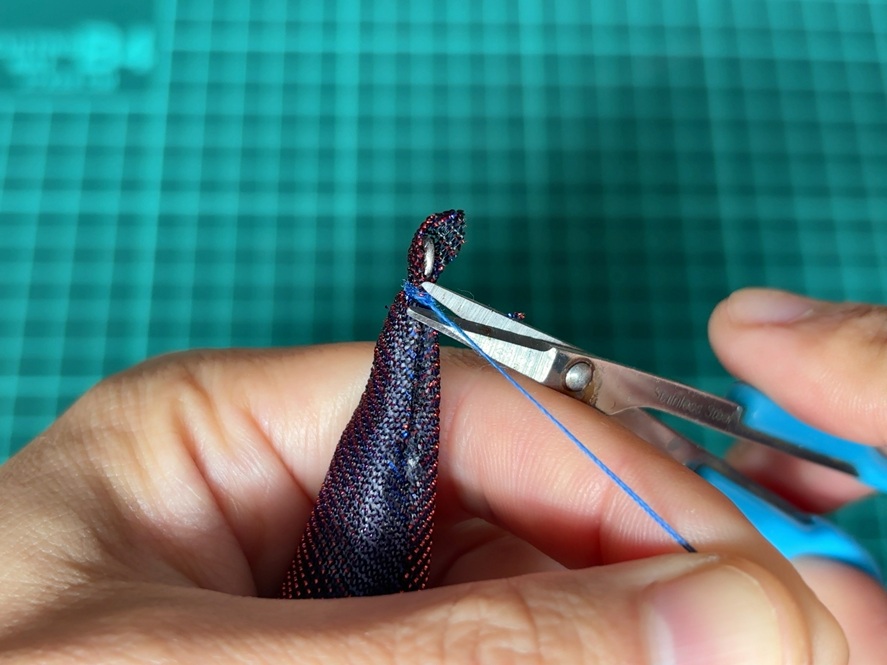 接着剤が乾いたら、余っていた布部分をカットし仕上げます。