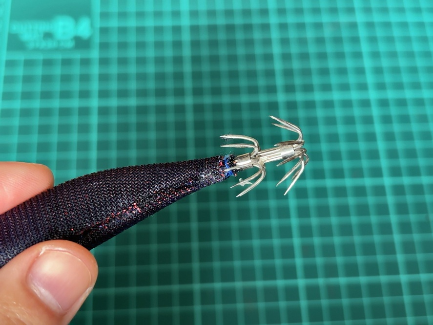 エギを使っていると、イカに噛まれたり岩に擦れたりして、布が徐々に破れていきます。