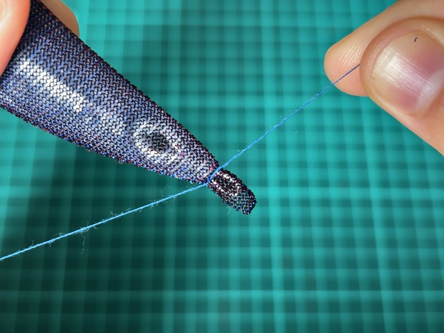 余り代は腹の溝に埋めていくので、短くなりすぎないようにします。