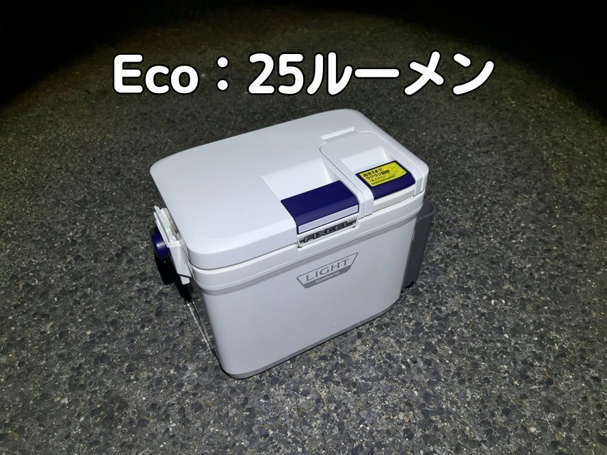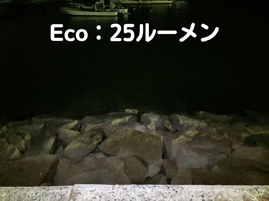 Ecoモード25ルーメンは、あまり遠くまでは照らせないので、手元の作業に向いています。