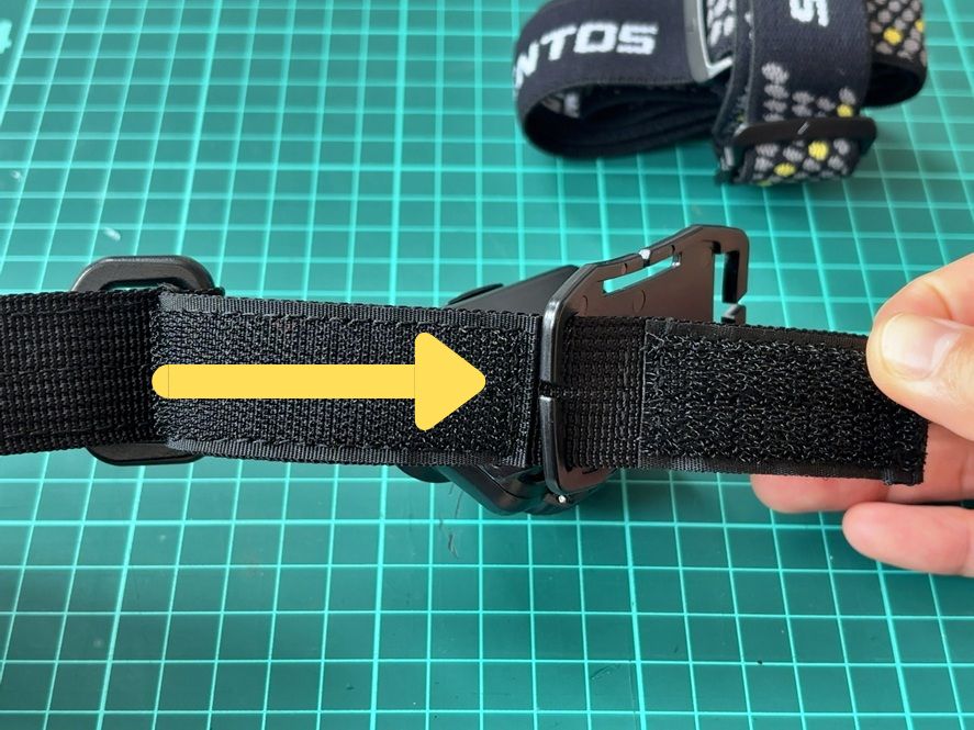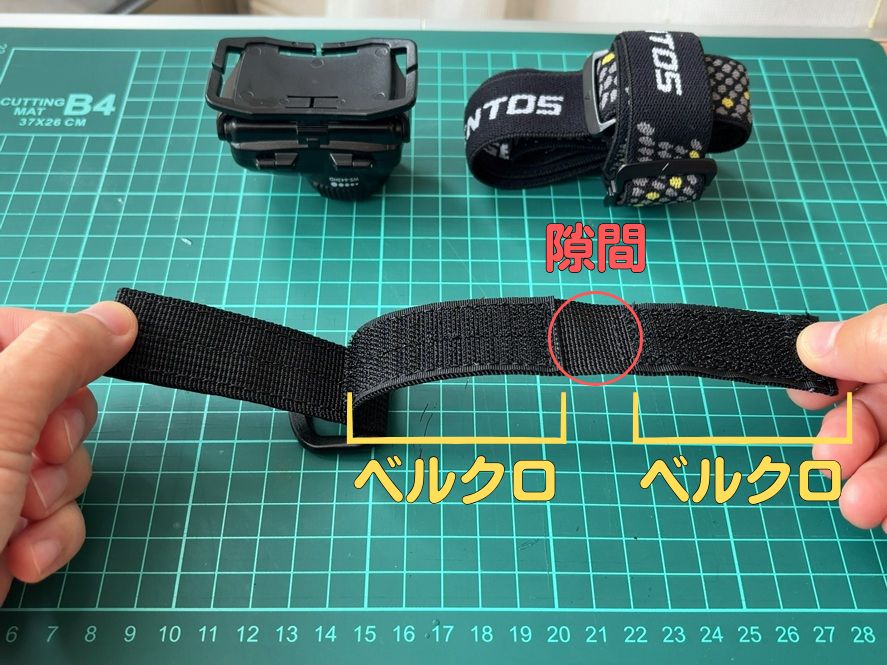 ダイソーのベルクロは2.0cmなので、ループ幅の合うヘッドライトに取り付けます。