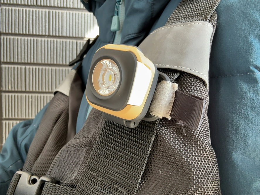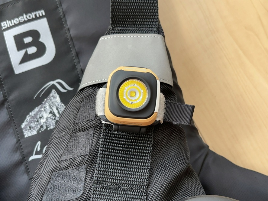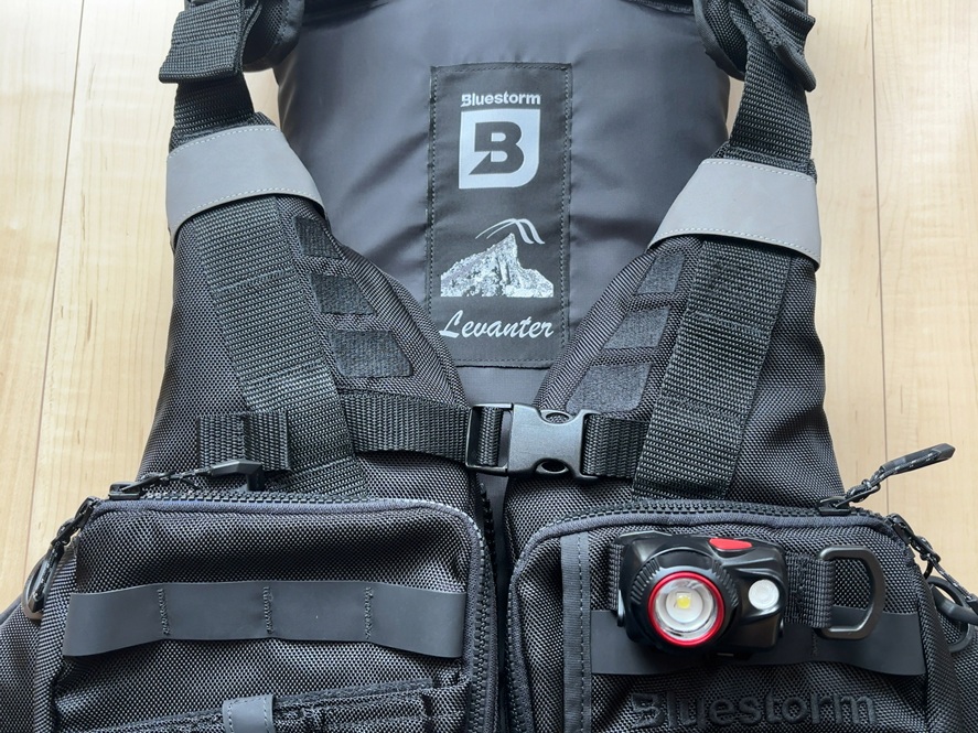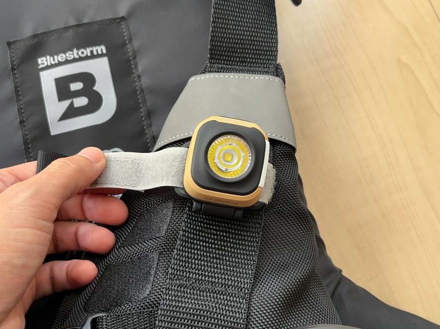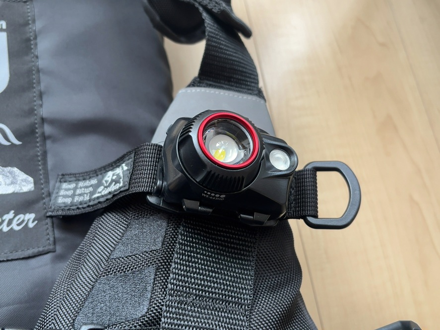 ヘッドライトの場合、いつも手探りでスイッチを探していますが、フローティングベストに装着すればスイッチが目視できるので、断然押しやすいです。