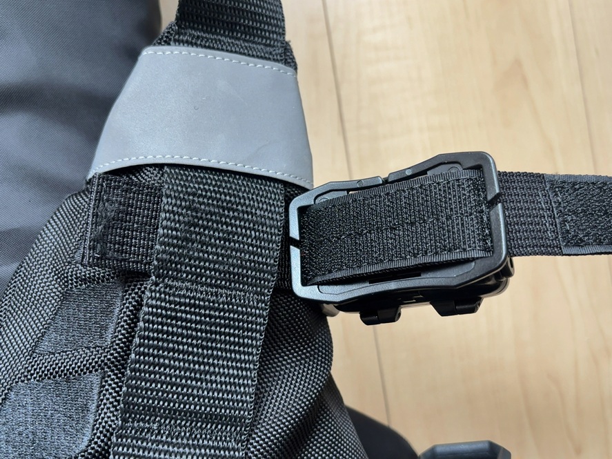 リーニアのベルトは取り付けに少しコツがいりますが、通してしまえばしっかりと固定できます。