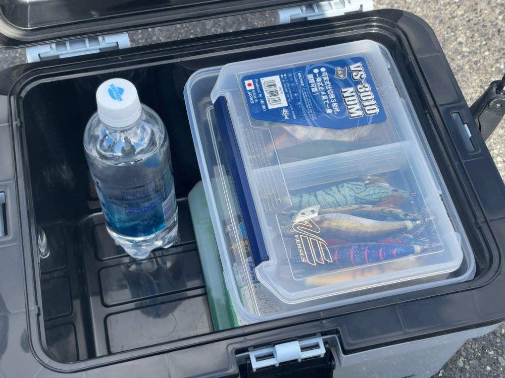 キャプテンスタッグのクーラーボックスなら性能はそこそこでも、重量は半分以下。軽量性重視のランガンと非常に相性の良いクーラーボックスです。