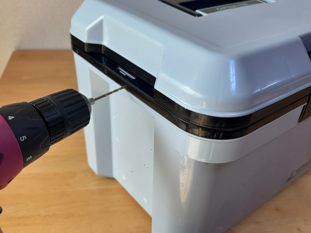 また、価格もメーカー品と比べてリーズナブルなので、改造のためにクーラーボックスに「穴あけ」するのにも抵抗が少ないです。