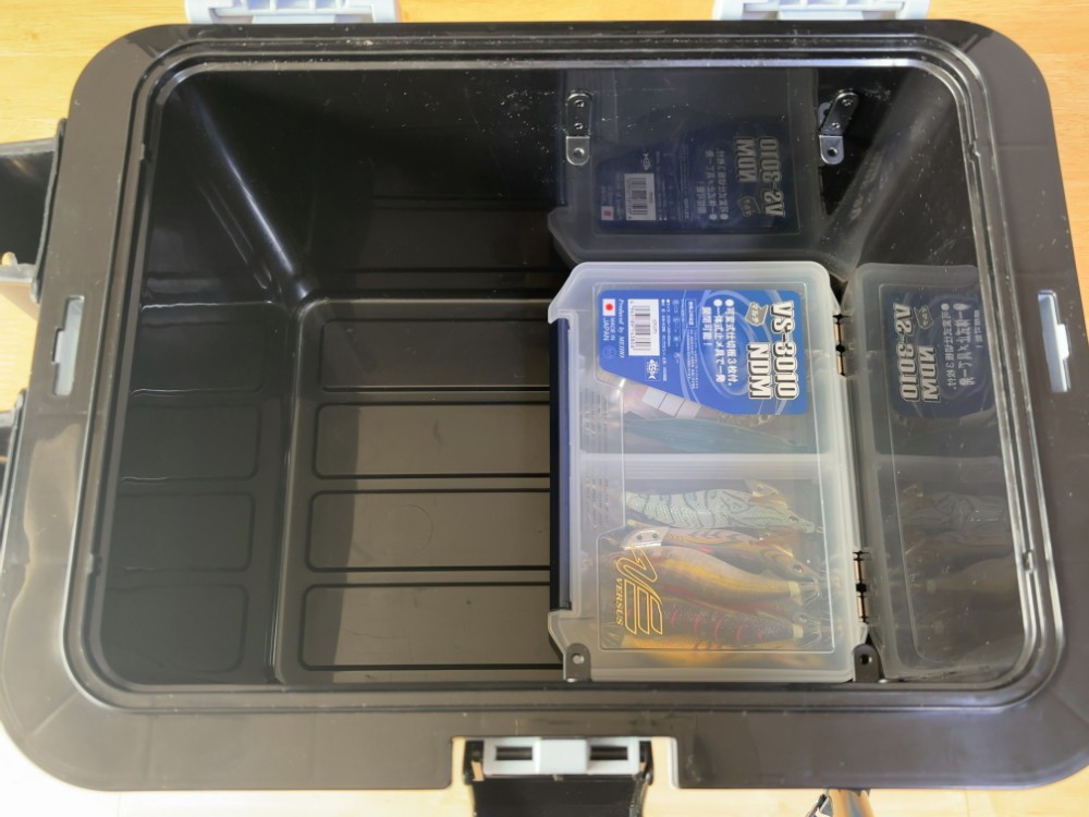 タックルはメイホーのVS3010NDMケースが2つは余裕で入ります。
