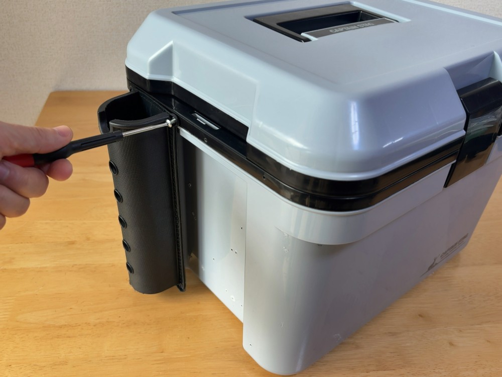 また、ハンドルはフタと一体型なので、ロッドホルダーとの干渉もありません。