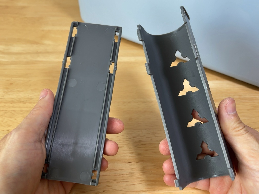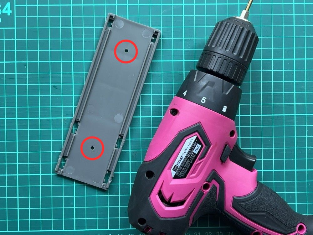 穴あけ位置はカバーの開口部に合うように開けておきます。取り付け時はその開口部からドライバーを使ってネジ止めします。