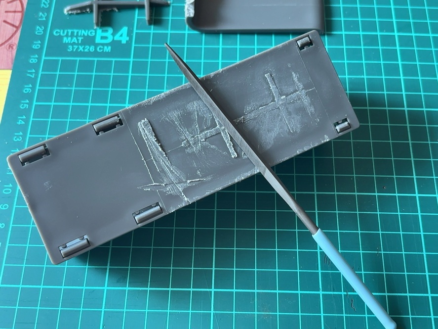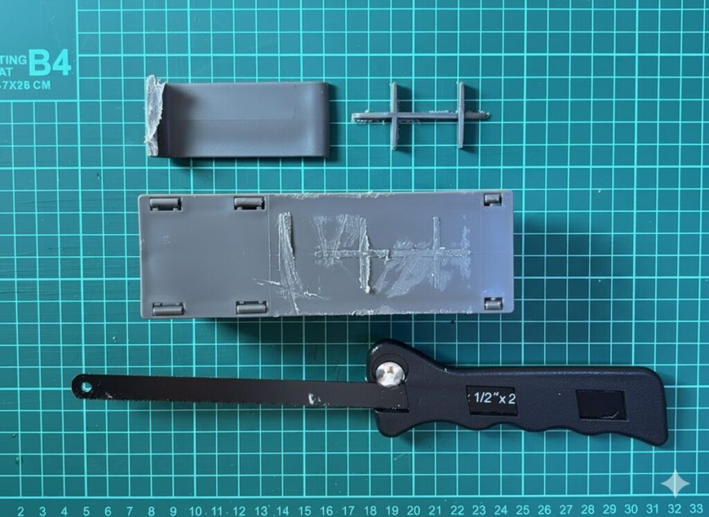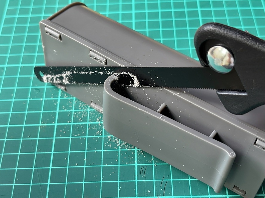 ロッドホルダー背面にあるパーツを切断し、平らに仕上げていきます。