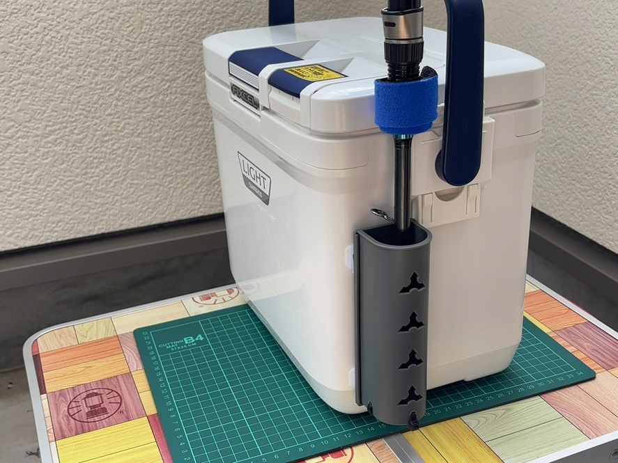 コンパクトなクーラーをメインに使っている方には、まさにちょうどいいサイズ感のロッドホルダーです。