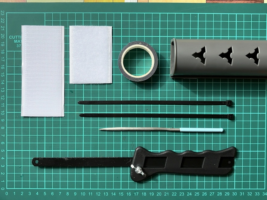 マジックテープをロッドホルダーに接着するのに使います。2mm以上の少し厚めのものを選んでください。DIYコーナーにあります。