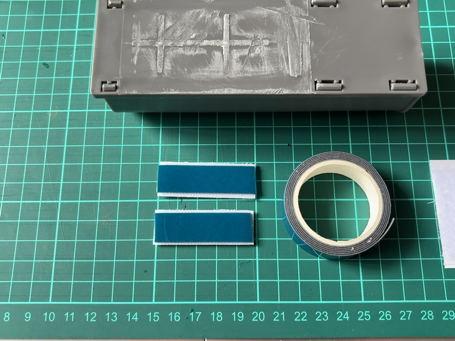 もともと粘着テープが貼りついていますが、厚みを出すために上から両面テープを貼ります。