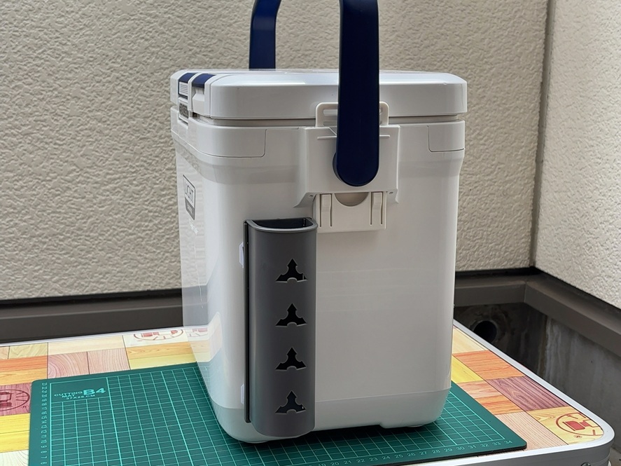 しかしセリアのロッドホルダーなら、10L前後のクーラーボックスにぴったりフィットします。