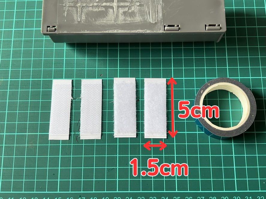 マジックテープのオス裏面に両面テープを貼り付けます。