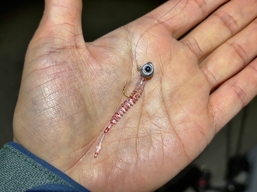 アジングのようなジグ単のアイに4lbの細いラインでも、くっきり見えるので結びやすいです。